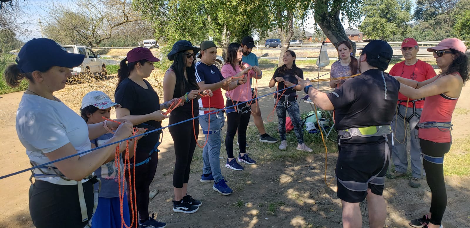 Talleres hands-on de nudos, uso de equipos, técnicas de rescate y navegación.